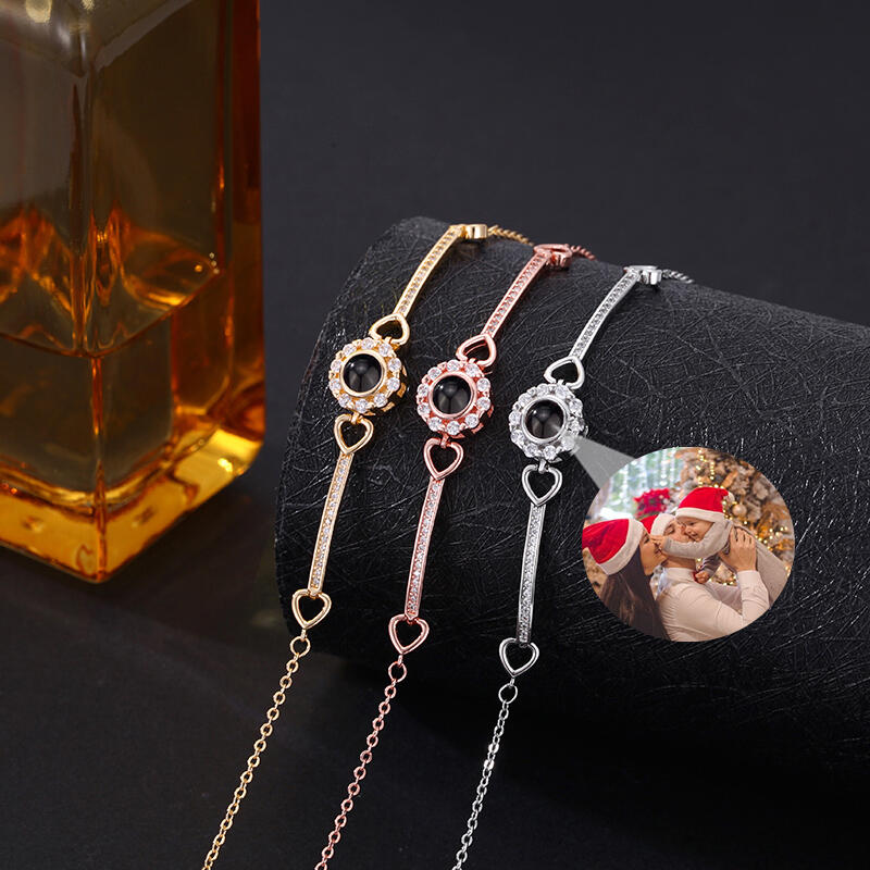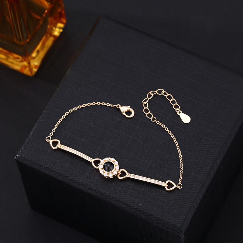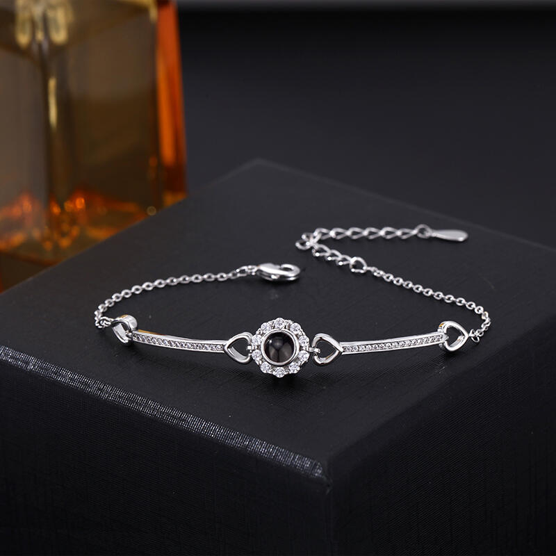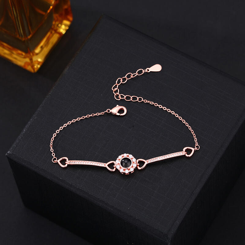 Bracelet personnalisé avec pendentif rond et diamants Cadeau d'anniversaire chaleureux pour elle