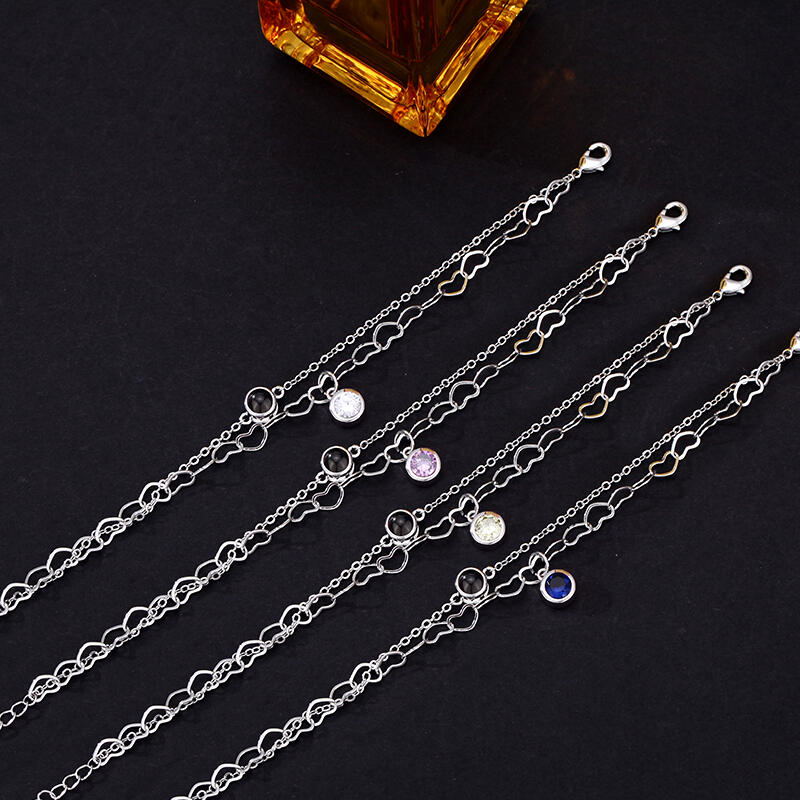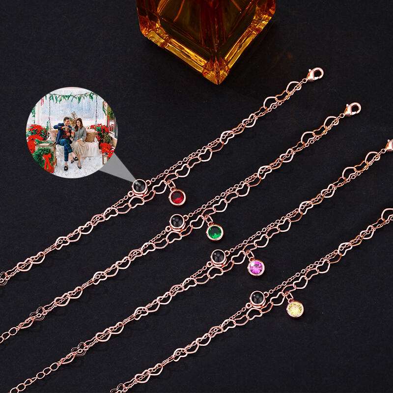 Personalized Projected Picture Heart-Shaped Bracelet Heart-Shaped Chain With Birthstone Warm Gift