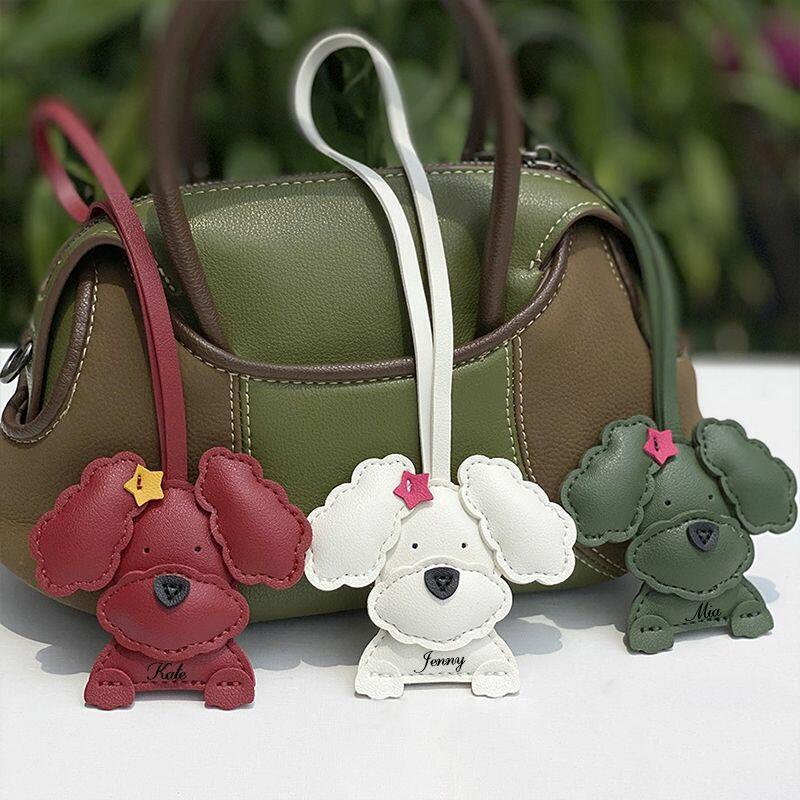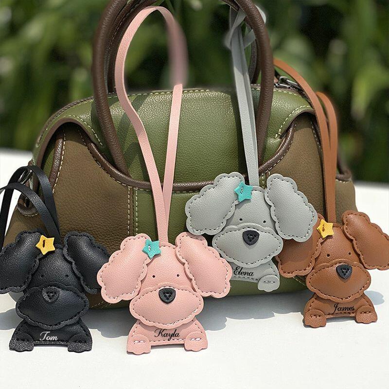 Breloque personnalisée en cuir PU pour sac à main motif chien mignon cadeau personnalisé avec nom pour les amoureux des animaux