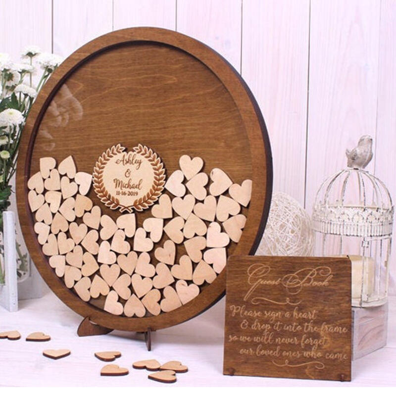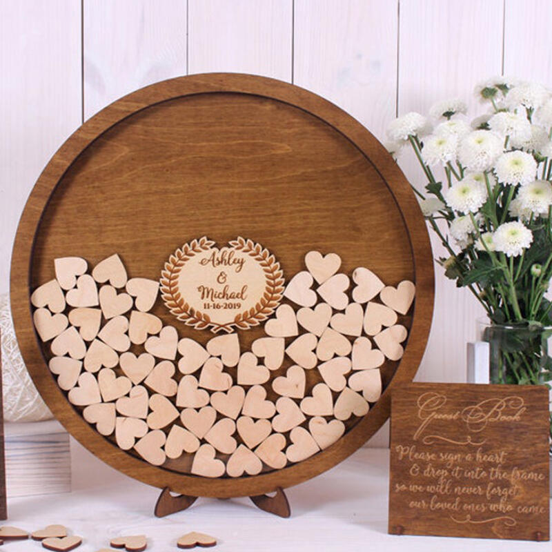 Livre d'or rond personnalisé avec insertions en forme de coeur Cadeau de mariage romantique