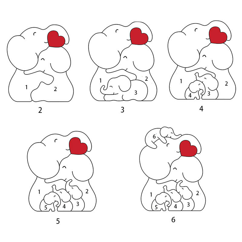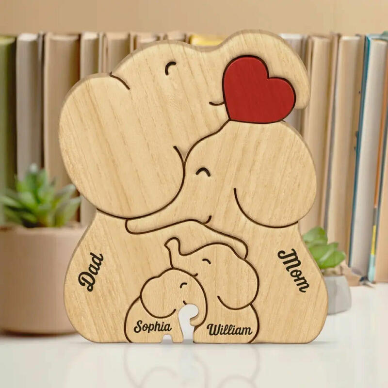 Puzzle en bois personnalisé Famille d'éléphants Cadeau de Noël