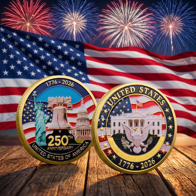 Pièce commémorative du 250e anniversaire de l'indépendance américaine avec la statue de la Liberté