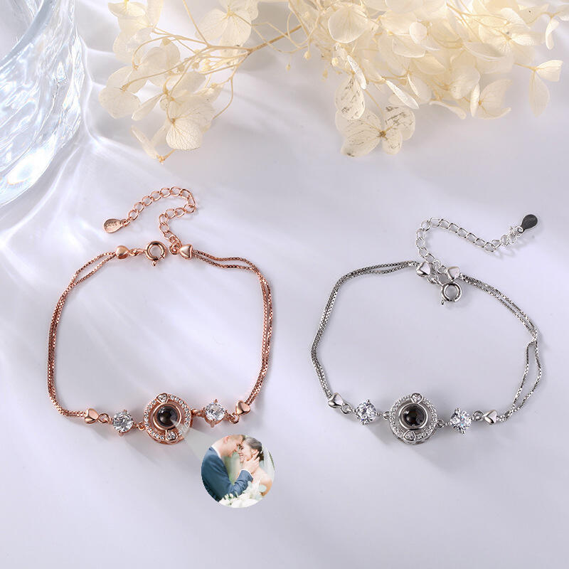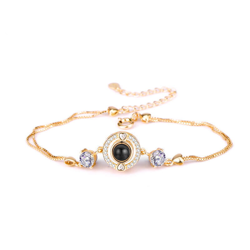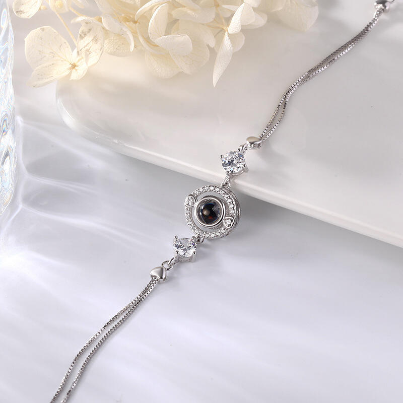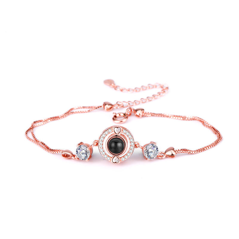 Argent Sterling Personnalisé Classique Rond Photo Projection Bracelet avec diamants
