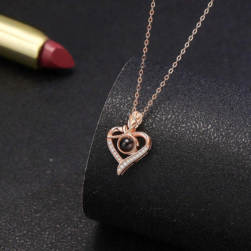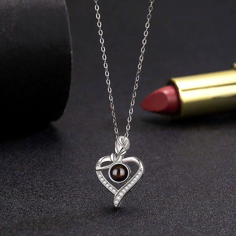 Collier en Argent avec Rose et Coeur Cadeau élégant pour la Saint Valentin